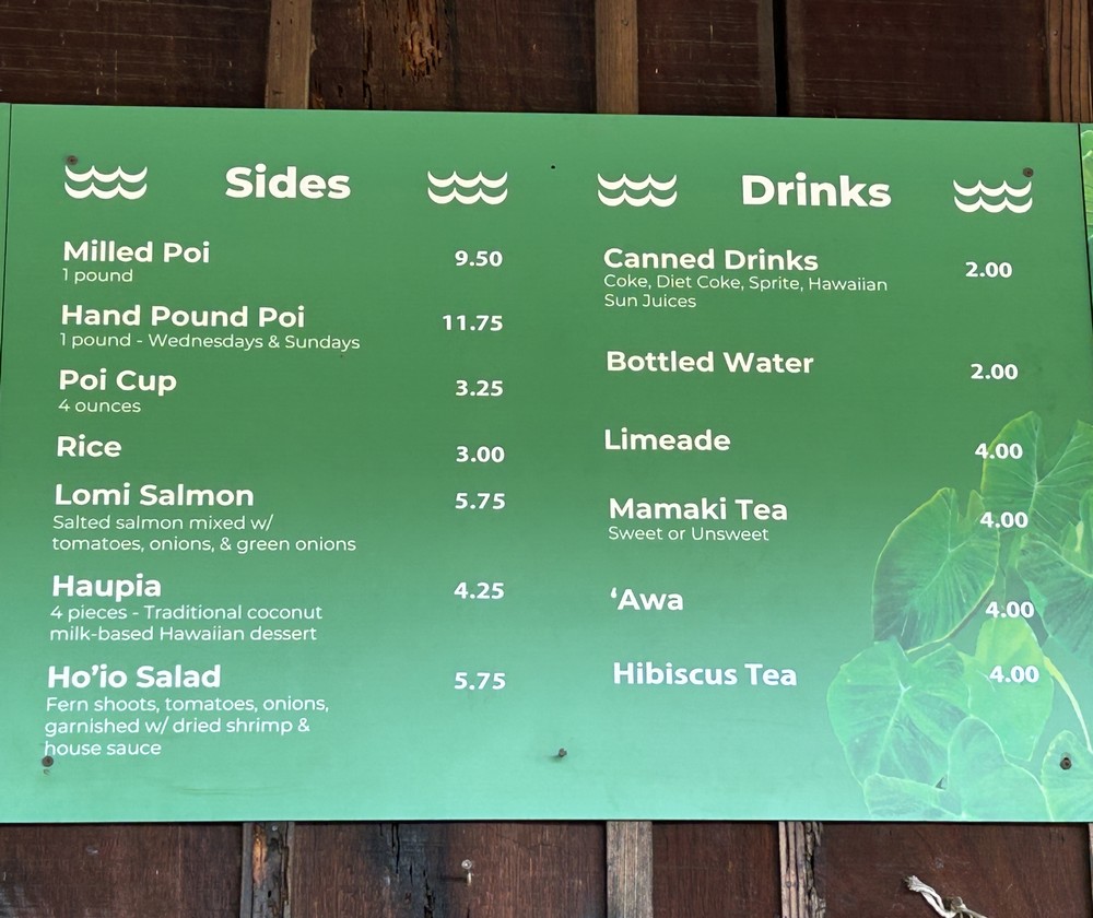 Waiahole Poi Factory Menu